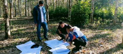 ▲马翔(中)为集团定点帮扶项目现场选址