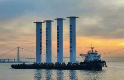 由中船澄西为Anemoi Marine Technologies公司建造的4套35米折叠式船用转子帆,将安装在一艘388000载重吨Valemax型矿砂船上,可以从垂直方向降低可折叠旋筒风帆,以减轻对气流和货物装卸操作的影响。 该转子帆最高设计转速达200转/分钟,倾倒角度达到89°,接近水平。据Anemoi测算,项目预计年节能效果达到10,7%,相当于减少1200-1500吨燃油使用、6000吨二氧化碳排放,节能减排效果显著。 飘花影视在线。