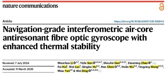4月14日,中船集团旗下七〇七所和暨南大学等构建的深度合作研究团队,在国际权威顶级期刊《Nature Communications》发表了题为“Navigation-grade interferometric air-core anti-resonant fibre optic gyroscope with enhanced thermal stability”的最新研究成果,实现了空芯光纤陀螺领域的新突破, 该技术可推动光纤惯性导航系统的技术升级和产品创新,随着空芯光纤制备与陀螺整机集成相关工艺的不断成熟,空芯光纤陀螺有望成为下一代高精度光纤惯性导航系统的标配器件,推动整个行业向更高性能,更小体积 飘花影视,更低功耗的方向发展。